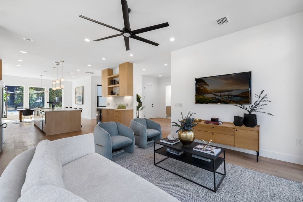 This is another exceptional Habitat Haus home located in the highly desirable 78745 area of Austin. This approximately 2,690 square foot 4 bedrooms and 3 bathrooms residence features soaring ceilings and an open-concept living space that beautifully integrates the kitchen, dining, and living areas. You'll find stunning wood floors throughout, enhancing the home's warmth and elegance, along with impressive floor-to-ceiling windows that fill the space with natural light. Perfect kitchen for those who love to cook, boasting custom soft-close cabinets, stainless steel appliances, quartz countertops, and plenty of workspace. The home’s neutral color palette and warm wood accents create an inviting atmosphere, ready for your personal touch. The location is ideal, just minutes from Downtown Austin and convenient to the city’s finest restaurants, shops, and entertainment venues. This is a unique chance to own a beautiful new construction home with lasting quality and modern amenities in one of Austin’s vibrant neighborhoods.Builder warranty 1-2-10.