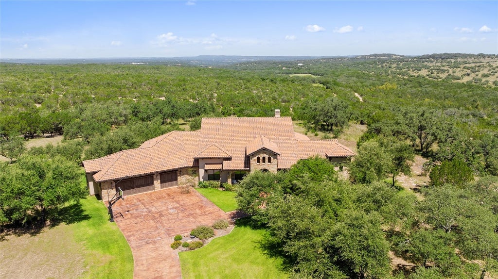 Discover unparalleled luxury and privacy at Cedar Creek Ranch, a magnificent, gated 21.78-acre ranchette within the prestigious Ranches at Hamilton Pool. A private, paved drive leads to this custom-built masterpiece, designed as a forever home with meticulous attention to detail. Inside, travertine floors and a barrel-vaulted hallway welcome you into a light-filled living room with cathedral ceilings, a fireplace with a live-edge mantle, and French doors offering miles of unobstructed views. The well-appointed kitchen features an oversized granite island, custom Knotty Alder cabinetry, an integrated Sub-Zero-style refrigerator, a 6-burner gas cooktop and grill, and a built-in ice-maker. This thoughtfully designed home offers exceptional privacy, with the owner's suite secluded from the additional en-suite bedrooms. All bedrooms feature wide-plank English oak flooring and are sound-buffered by insulated interior walls and solid-core doors. Enjoy a dedicated office, game room with wet bar, and a Theater Room (easily convertible to a 4th bedroom). For ultimate comfort and convenience, the home is seamlessly controlled by Control4 Smart Home Automation and Nest Thermostats. A private water well feeds a 2,500-gallon storage tank, and a sophisticated UV/RO water purification system flows at 50 gpm. The property is primed for expansion, pre-wired for a future pool and guest house, complete with a second septic system. The rolling acreage has been carefully maintained, with trees pruned for optimal health, and benefits from a wildlife tax exemption, contributing to a low tax rate of ~1.79%. This equestrian-friendly property is permitted for up to 6 horses. Enjoy AT&T Fiber Internet. Just minutes from Hamilton Pool Preserve and Milton Reimers Ranch Park, this prime location offers easy access to dining, shopping, and entertainment in Bee Cave and Dripping Springs, with a simple commute to Austin, Lake LBJ, and Fredericksburg. Zoned for highly-rated Lake Travis ISD.